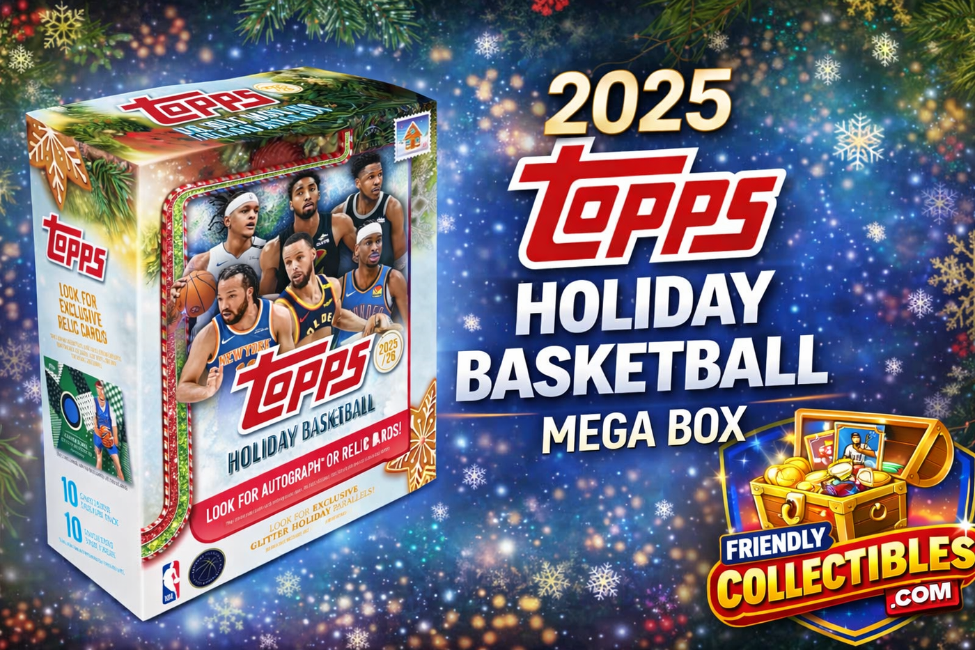 {"id":9210934919336,"title":"Pick Your Division in 2025 Topps Holiday Basketball Mega Box ID 25HOLIDAYBSK402","handle":"pick-your-division-in-2025-topps-holiday-basketball-mega-box-id-25holidaybsk402","description":"\u003ch4\u003e\u003cspan\u003e10 Packs Per Box, 10 Cards Per Pack\u003c\/span\u003e\u003c\/h4\u003e\n\u003cp\u003e \u003c\/p\u003e\n\u003cp\u003e\u003cspan\u003eHidden Elf cards are a mega box case-hit at 1:200 packs, and they also have different cards numbers on the flip side to help collectors differentiate them from the base set. The 25-card checklist follows:\u003c\/span\u003e\u003c\/p\u003e\n\u003cp\u003e \u003c\/p\u003e\n\u003cp\u003e\u003cspan\u003e\u003cb\u003eEach Box contains 1 Oversized Die-Cut Ornament, 1 Short Print Card, 1 Base Holiday Light Blue and White Glitter Parallel, 1 Base Holiday Blue Metallic Glitter Parallel, and 6 Base Holiday Glitter Parallels, on average!\u003c\/b\u003e\u003c\/span\u003e\u003c\/p\u003e\n\u003ch4\u003e\u003cbr\u003e\u003c\/h4\u003e\n\u003ch4\u003eProduct Highlights\u003c\/h4\u003e\n\u003cul class=\"disc\"\u003e\n\u003cli\u003e6 Base Holiday Glitter Parallels Per Box!\u003c\/li\u003e\n\u003cli\u003e1 Holiday Blue Metallic Glitter Parallel Per Box!\u003c\/li\u003e\n\u003cli\u003e1 Die-Cut Ornament Card Per Box!\u003c\/li\u003e\n\u003cli\u003e1 Short Print Card Per Box!\u003c\/li\u003e\n\u003cli\u003eFind Hidden Elf Inserts!\u003c\/li\u003e\n\u003c\/ul\u003e\n\u003ch2 class=\"wp-block-heading\"\u003e2025-26 Topps Holiday Basketball Variations Codes and How to Use Them\u003c\/h2\u003e\n\u003cp\u003eWant another way to spot one of the 2025-26 Topps Holiday variations besides the added elements on the front or the design of the card back? The codes in the fine print on the card backs can tell you what you have. To check, simply look at the last three digits of the CMP code at the bottom of a card’s flip side. When it comes to variations, the three digits to know are:\u003c\/p\u003e\n\u003cul class=\"wp-block-list\"\u003e\n\u003cli\u003eBase Set — 997\u003c\/li\u003e\n\u003cli\u003eImage Variations — 039\u003c\/li\u003e\n\u003cli\u003eBack Variations — 040\u003c\/li\u003e\n\u003cli\u003eHidden Elf — 042\u003c\/li\u003e\n\u003c\/ul\u003e\n\u003cdiv class=\"wp-block-image\"\u003e\n\u003cfigure class=\"aligncenter size-full\"\u003e\u003cimg loading=\"lazy\" decoding=\"async\" width=\"426\" height=\"600\" src=\"https:\/\/beckett-www.s3.amazonaws.com\/news\/news-content\/uploads\/2025\/10\/2025-26-topps-holiday-variations-cmp-1.jpg\" alt=\"\" class=\"wp-image-335243\" srcset=\"https:\/\/img.beckett.com\/news\/news-content\/uploads\/2025\/10\/2025-26-topps-holiday-variations-cmp-1.jpg 426w, https:\/\/img.beckett.com\/news\/news-content\/uploads\/2025\/10\/2025-26-topps-holiday-variations-cmp-1-213x300.jpg 213w, https:\/\/img.beckett.com\/news\/news-content\/uploads\/2025\/10\/2025-26-topps-holiday-variations-cmp-1-266x375.jpg 266w, https:\/\/img.beckett.com\/news\/news-content\/uploads\/2025\/10\/2025-26-topps-holiday-variations-cmp-1-369x520.jpg 369w, https:\/\/img.beckett.com\/news\/news-content\/uploads\/2025\/10\/2025-26-topps-holiday-variations-cmp-1-224x315.jpg 224w, https:\/\/img.beckett.com\/news\/news-content\/uploads\/2025\/10\/2025-26-topps-holiday-variations-cmp-1-298x420.jpg 298w, https:\/\/img.beckett.com\/news\/news-content\/uploads\/2025\/10\/2025-26-topps-holiday-variations-cmp-1-176x248.jpg 176w, https:\/\/img.beckett.com\/news\/news-content\/uploads\/2025\/10\/2025-26-topps-holiday-variations-cmp-1-92x130.jpg 92w, https:\/\/img.beckett.com\/news\/news-content\/uploads\/2025\/10\/2025-26-topps-holiday-variations-cmp-1-71x100.jpg 71w, https:\/\/img.beckett.com\/news\/news-content\/uploads\/2025\/10\/2025-26-topps-holiday-variations-cmp-1-344x485.jpg 344w, https:\/\/img.beckett.com\/news\/news-content\/uploads\/2025\/10\/2025-26-topps-holiday-variations-cmp-1-400x563.jpg 400w\" sizes=\"auto, (max-width: 426px) 100vw, 426px\"\u003e\u003c\/figure\u003e\n\u003c\/div\u003e\n\u003cp\u003e\u003ca name=\"sp\"\u003e\u003c\/a\u003e\u003c\/p\u003e\n\u003ch2\u003e2025-26 Topps Holiday Basketball – Image Variations\u003c\/h2\u003e\n\u003cp\u003eUnlike in the\u003cspan\u003e \u003c\/span\u003e\u003ca href=\"https:\/\/www.beckett.com\/news\/2025-topps-holiday-baseball-variations-guide\/\" rel=\"noreferrer noopener\" target=\"_blank\"\u003eTopps Holiday Baseball\u003c\/a\u003e\u003cspan\u003e \u003c\/span\u003eset where holiday hats, candy canes, and other graphics are added onto an existing image, the Topps Holiday Basketball\u003cspan\u003e \u003c\/span\u003e\u003ca href=\"https:\/\/www.ebay.com\/sch\/i.html?_nkw=2025-26+topps+holiday+sp+photo\u0026amp;_sacat=0\u0026amp;_from=R40\u0026amp;Sport=Basketball\u0026amp;_dcat=261328\u0026amp;mkcid=1\u0026amp;mkrid=711-53200-19255-0\u0026amp;siteid=0\u0026amp;campid=5339129957\u0026amp;customid=\u0026amp;toolid=10001\u0026amp;mkevt=1\" rel=\"noreferrer noopener\" target=\"_blank\"\u003eimage variations\u003c\/a\u003e\u003cspan\u003e \u003c\/span\u003eonly add subtle hints in the card’s design — plus one big giveaway on the flip side.\u003c\/p\u003e\n\u003cfigure class=\"wp-block-image size-large\"\u003e\u003cimg loading=\"lazy\" decoding=\"async\" width=\"1024\" height=\"585\" src=\"https:\/\/beckett-www.s3.amazonaws.com\/news\/news-content\/uploads\/2025\/10\/2025-26-topps-holiday-variations-image-1024x585.jpg\" alt=\"\" class=\"wp-image-335232\" srcset=\"https:\/\/img.beckett.com\/news\/news-content\/uploads\/2025\/10\/2025-26-topps-holiday-variations-image-1024x585.jpg 1024w, https:\/\/img.beckett.com\/news\/news-content\/uploads\/2025\/10\/2025-26-topps-holiday-variations-image-300x171.jpg 300w, https:\/\/img.beckett.com\/news\/news-content\/uploads\/2025\/10\/2025-26-topps-holiday-variations-image-768x439.jpg 768w, https:\/\/img.beckett.com\/news\/news-content\/uploads\/2025\/10\/2025-26-topps-holiday-variations-image-656x375.jpg 656w, https:\/\/img.beckett.com\/news\/news-conte